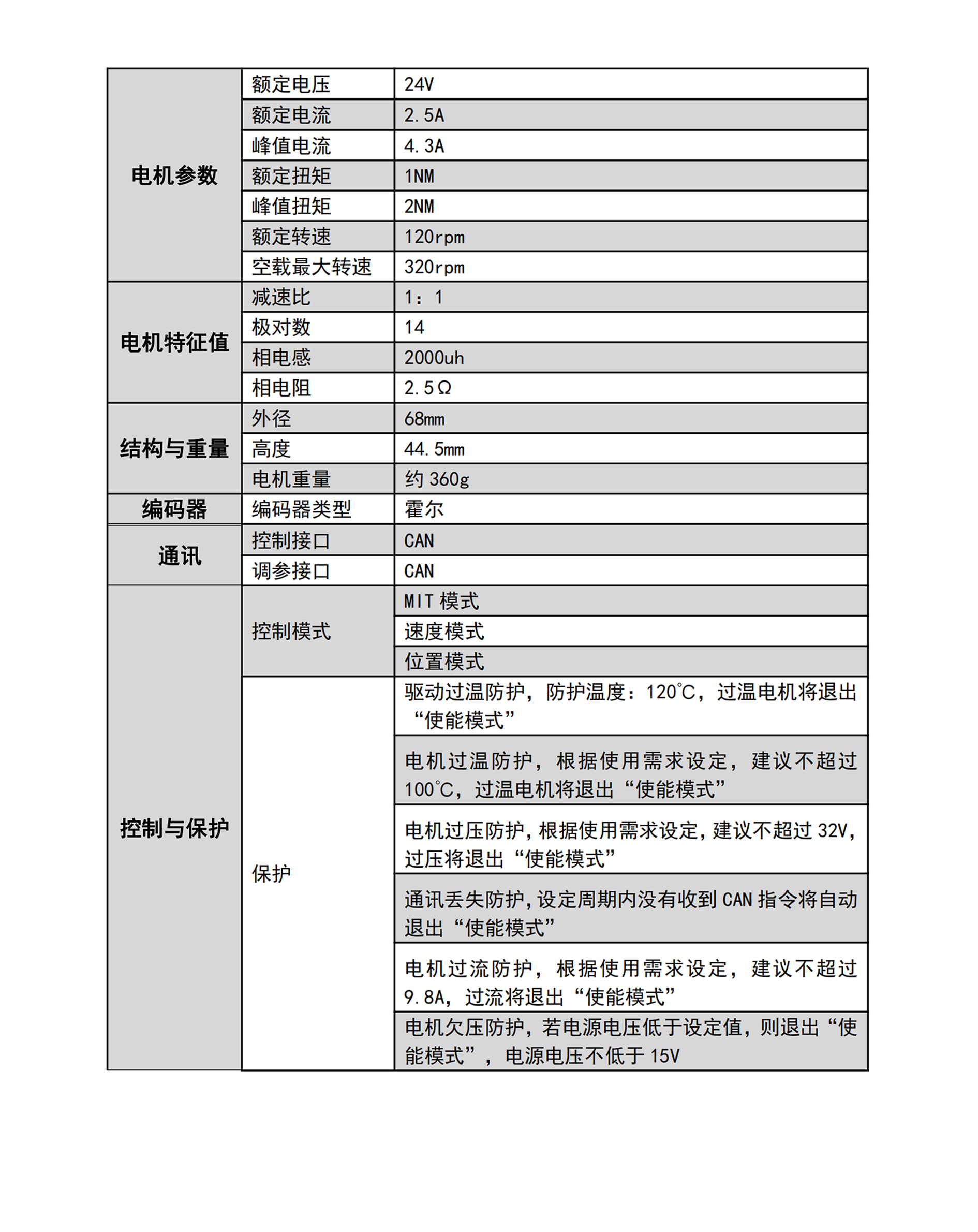 3. 可通过CAN总线反馈电机速度、位置、转矩、电机温度等信息。